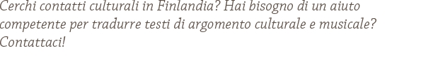 - Contatti nei vari settori culturali finlandesi, istituzionali