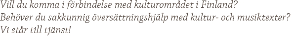 - Kontakter till det finska kulturfältet: institutioner och